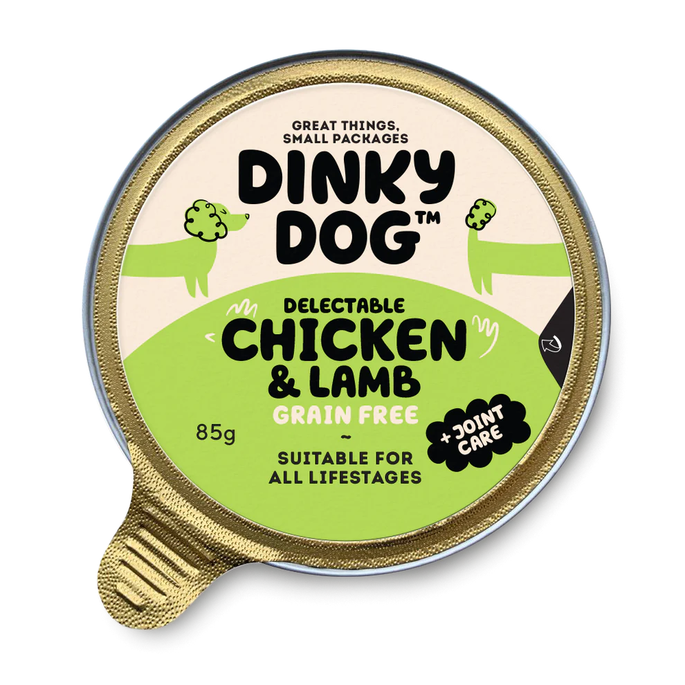 A tasty and wholesome complete wet food, Dinky Dog Delectable Chicken & Lamb is made with a blend of protein-rich meat.
