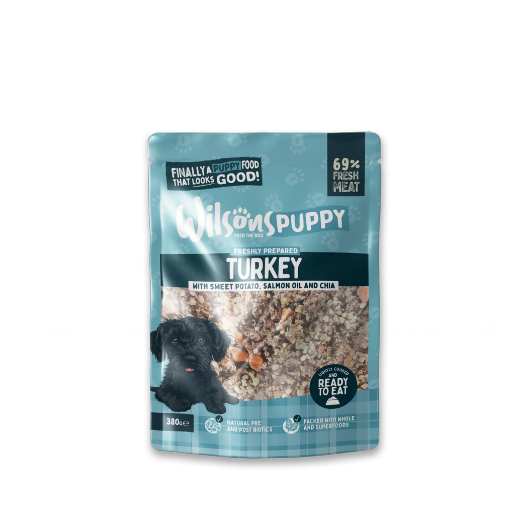 Freshly prepared and delicious Turkey with sweet potato, salmon oil and chia.